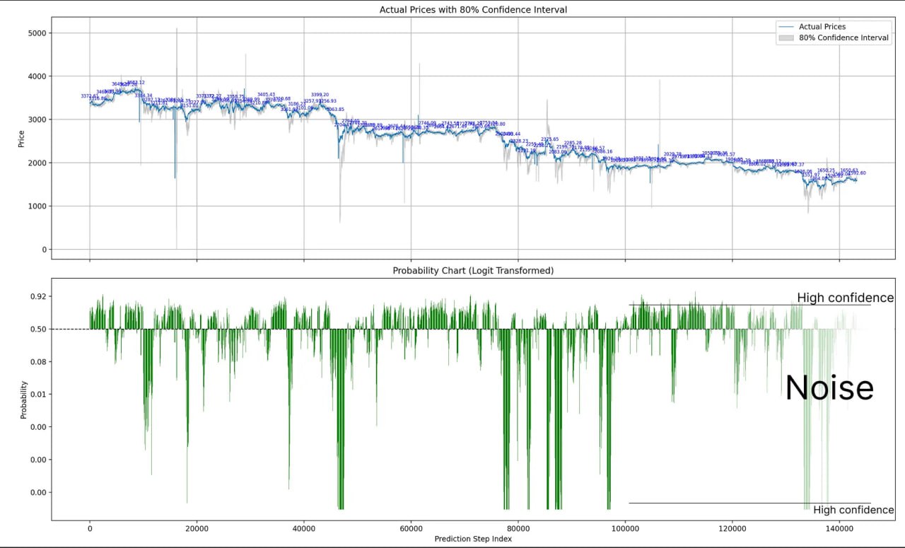 The model emphasizes extreme probabilities — values far from the 40–60% range — which typically signify critical volatility shifts rather than noise.
